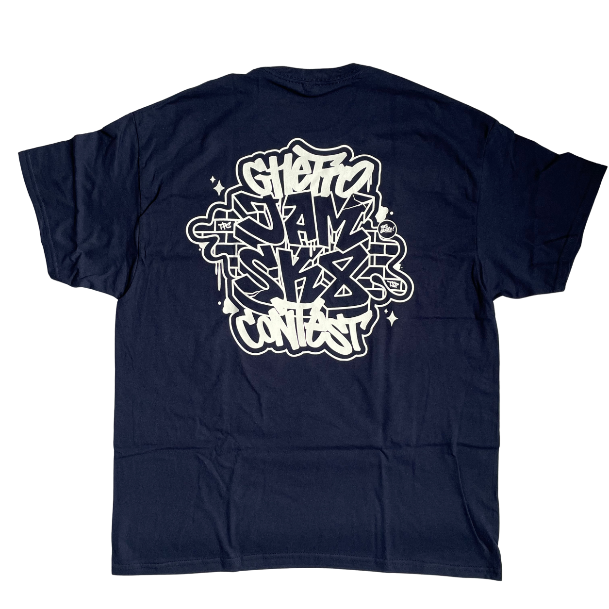 Grafika tego Ts powstała na kolejną odsłonę „Ghetto Jam”. To już trzeci raz jak robimy streetowy odlot pod Wiadim. Teamy z Bydgoszczy, Trójmiasta, oczywiście Torunia i okolic! Deskorolkowy ogień w czystej postaci. Bity spod igły Dj Stosunkowodobry. Zapach puszek z farbą, słońce, super skejt vibe i walka na triki. Grafikę taga :Ghetto Spot i Plecy z Old Schoolowym wrzutem zaprojektował Skejt Street Ziom z Torunia Peny! Yeah! Thx Bro.