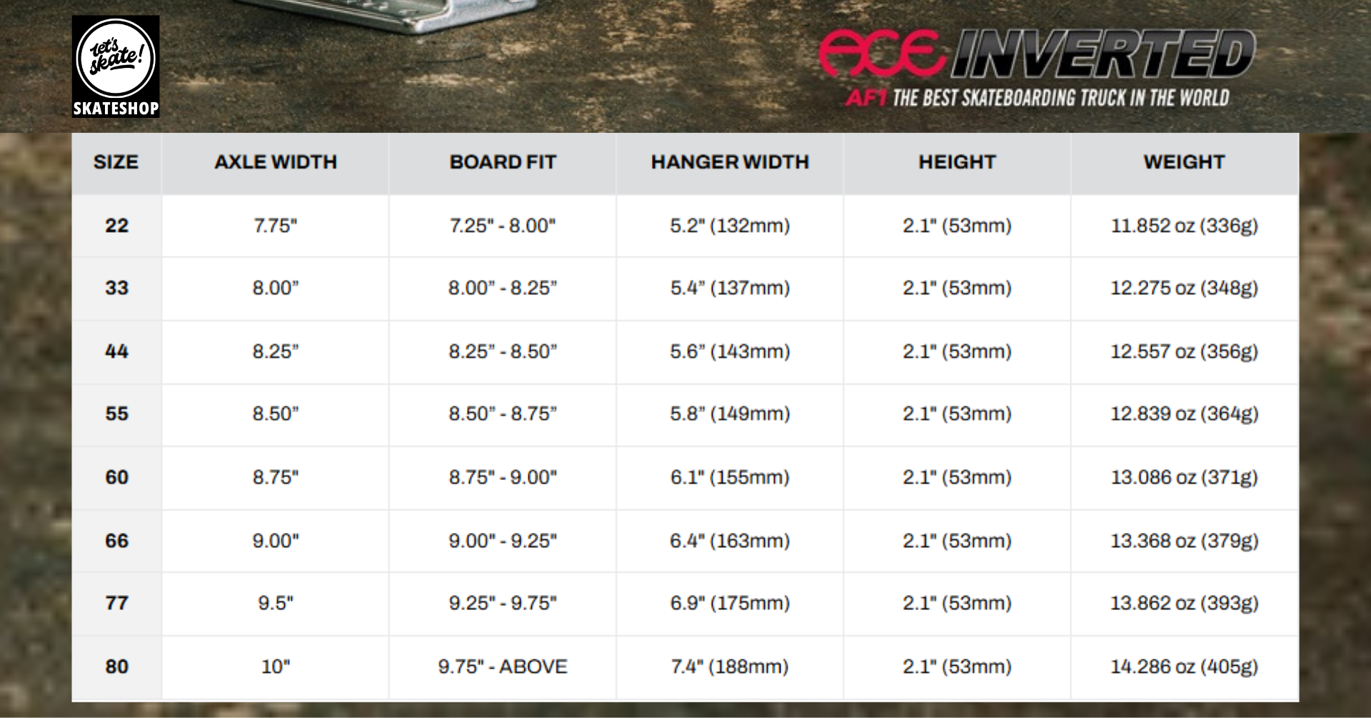 AF1 jest starannie produkowany przy użyciu naszego zastrzeżonego procesu odlewania. Lata prac rozwojowych sprawiły, że ACE AF1 ma o 70% większą integralność strukturalną aluminium, co czyni go najmocniejszym odlewanym truckiem na rynku.