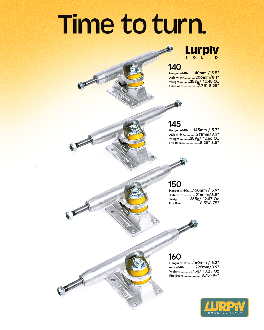 Nowa marka stworzona przez Oskara “Oski” Rozenberga (Polar Skate Co. / Nike SB) wnosi świeży powiew do świata trucków. Lurpiv to połączenie retro designu z końca lat 70. i nowoczesnej funkcjonalności – węższy hanger, ostre krawędzie i perfekcyjny feeling podczas grindów. Zaprojektowane przez skatera dla skaterów – styl, kontrola i innowacja w jednym. Super lekkie! I mega wytrzymałe !